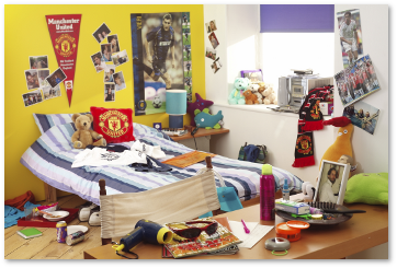 1Look at his room! He always does such a mess.