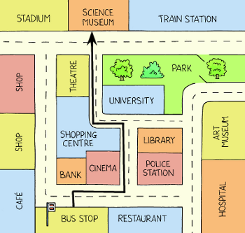 6 Write a dialogue with directions for a different route to the Science Museum.