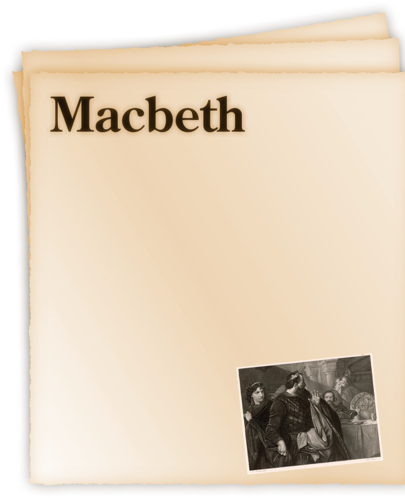 She took Macbeth out of the room. 'What's the matter with you?' she asked angrily. 'You're imagining things again. First it was a dagger in front of you on the night of Duncan's murder, and now this ghost. What's wrong? Don't be afraid. Be a man. Be brave. There's no one in your chair!'