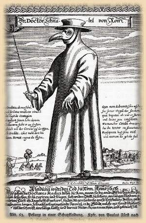 A plague doctor. There were flowers and herbs inside the mask to protect the doctor from bad smells.