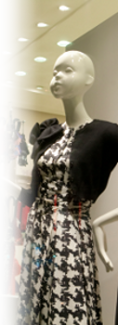 a person wearing the latest fashions. It's a mannequin of course and some mannequins are very realistic. They have hair and their faces have eyes, noses and mouths - some even have